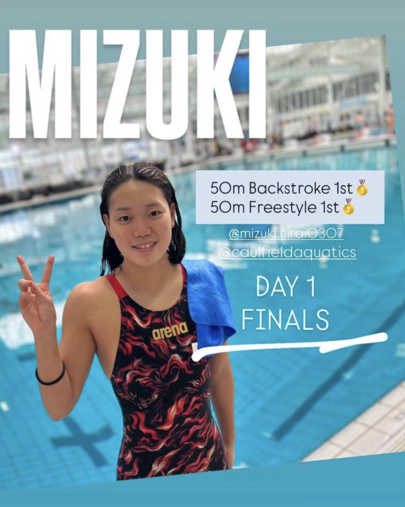 「2025 AUSTRALIAN SHORT COURSE CHAMPIONSHIPS」三種目優勝 MEMBERS INFO MIZUKI HIRAI SUPPORTERS 2025/10/03 14:40 フォロー オーストラリア開催 2025 AUSTRALIAN SHORT COURSE CHAMPIONSHIPS 50m背泳ぎ 優勝 50mフリー 優勝 100m背泳ぎ 優勝 URLをコピーする 報告する
